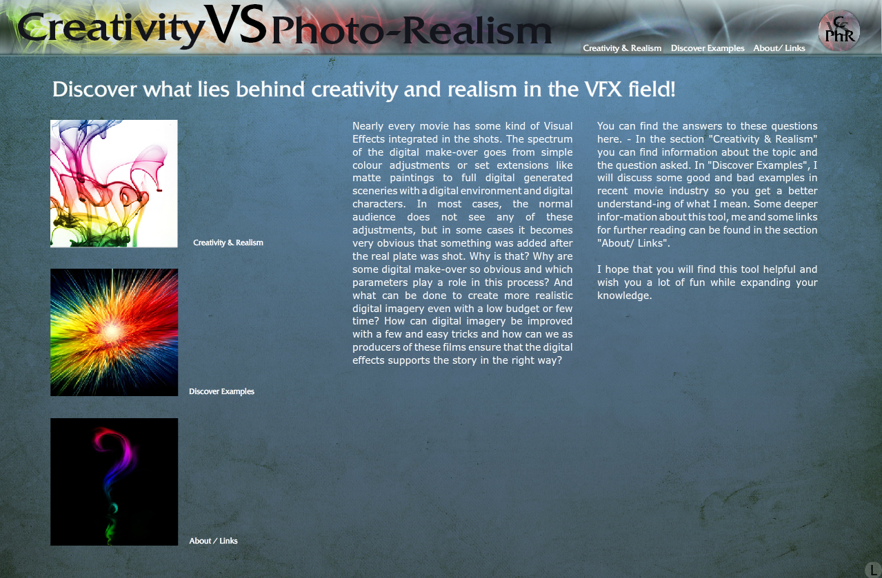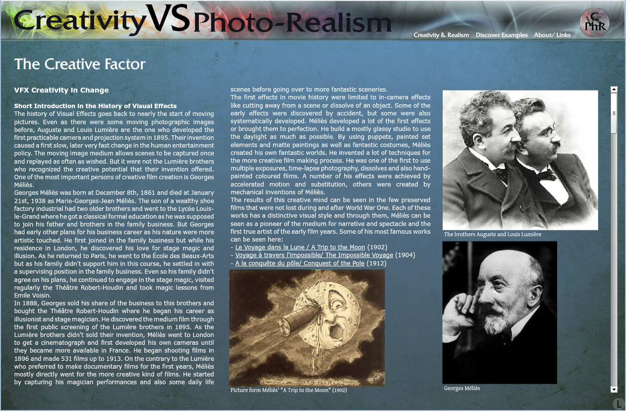The topic is focused on the question how realistic today's visual effects are and what creativity as well as photo-realism mean a VFX oriented production.